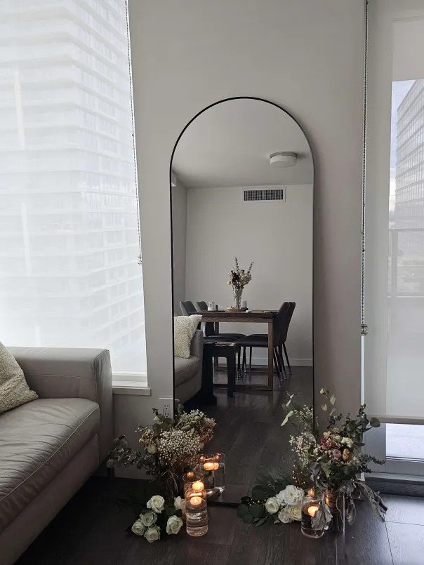 23”x67” with sleek black trim, including text customization in handwriting.